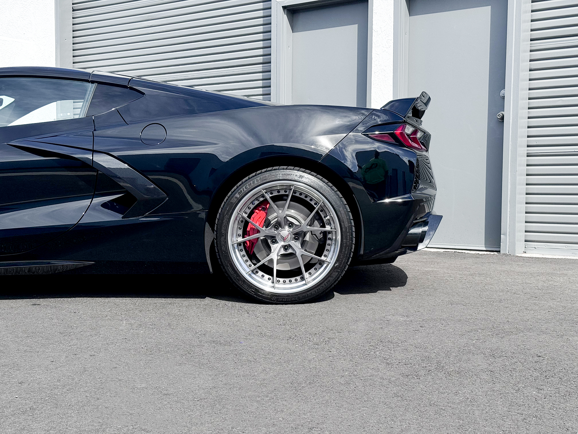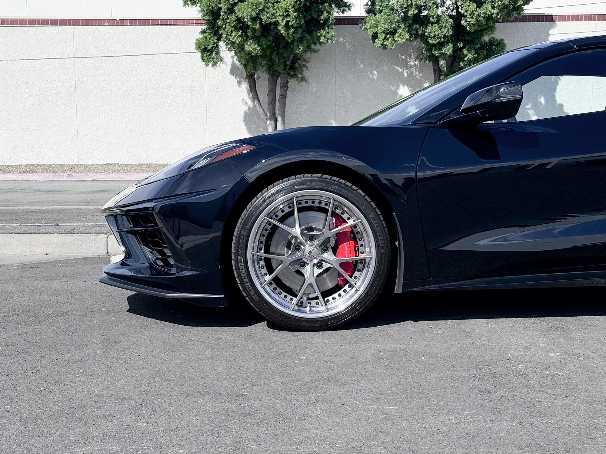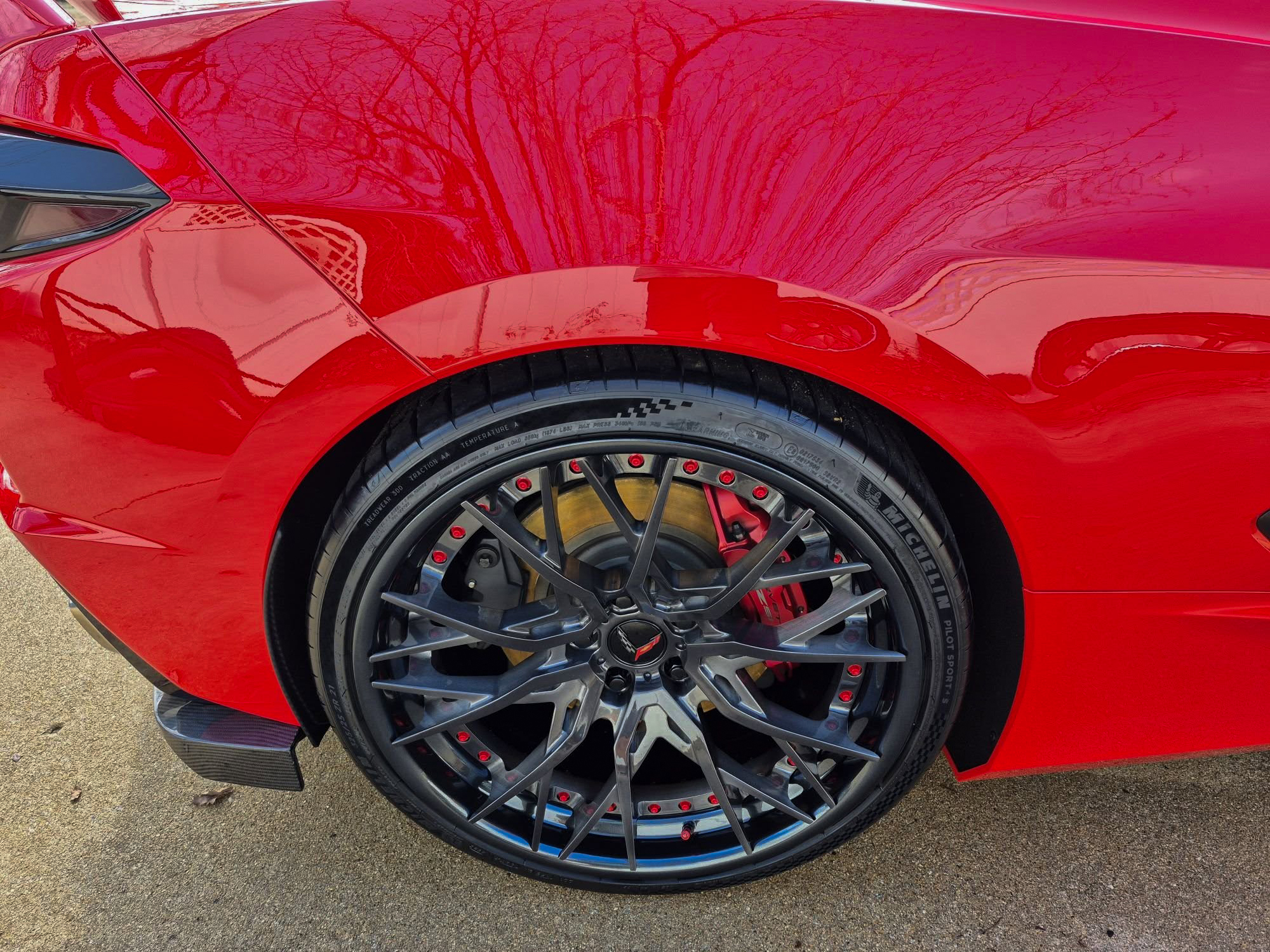 RS5 3PC CARBON FLASH BRUSHED ALUMINUM LIP SATIN RED HARDWARE