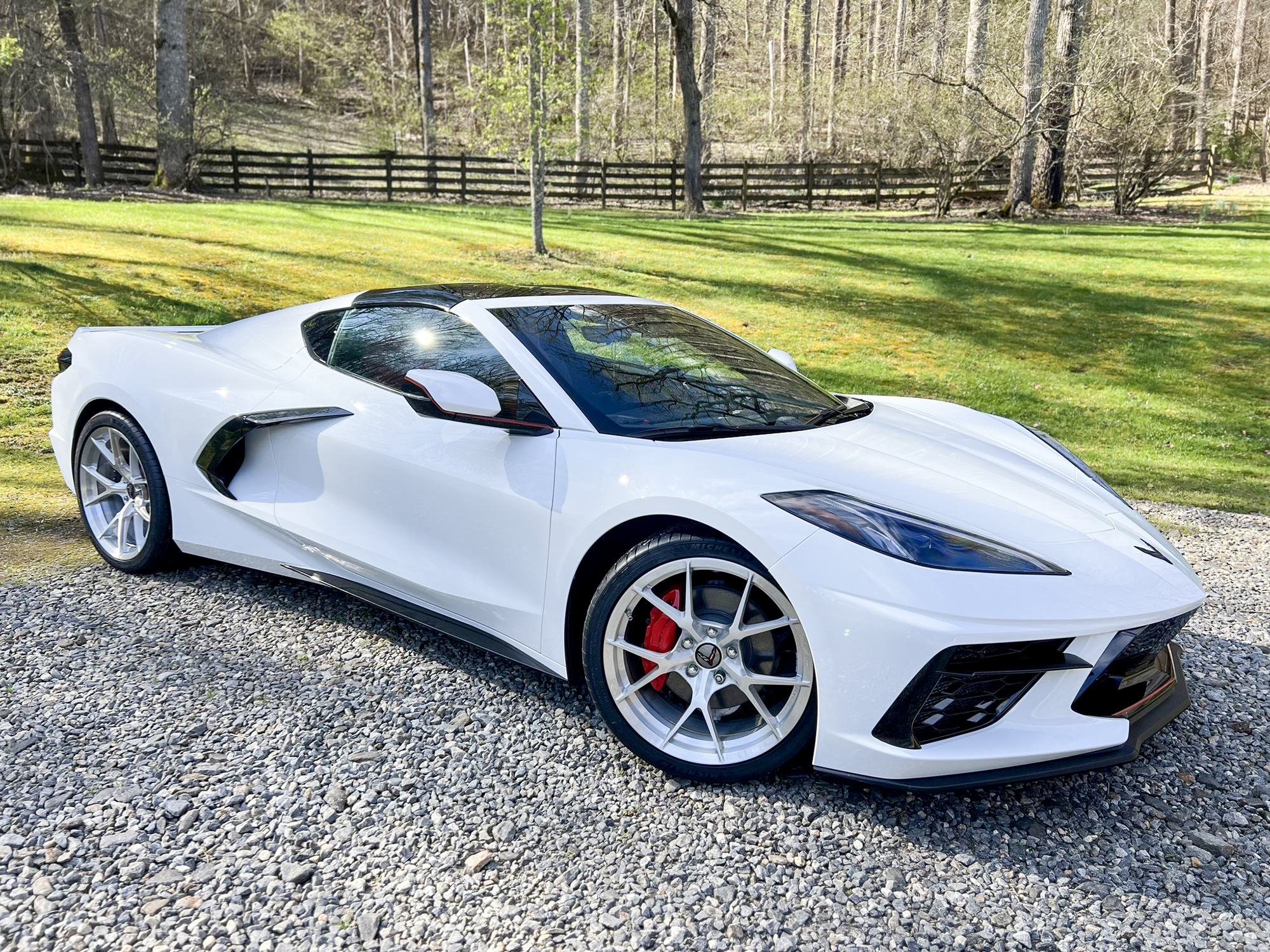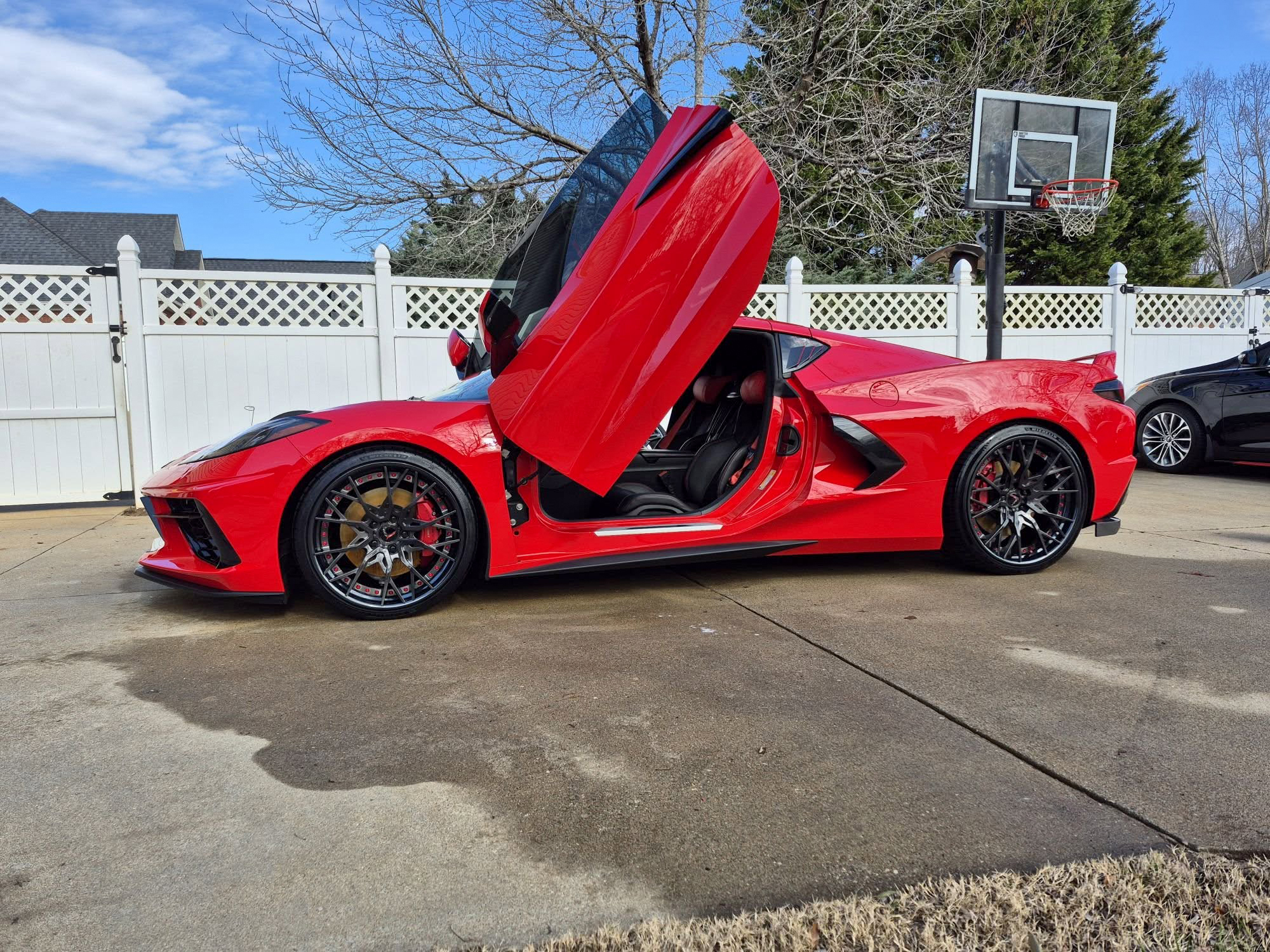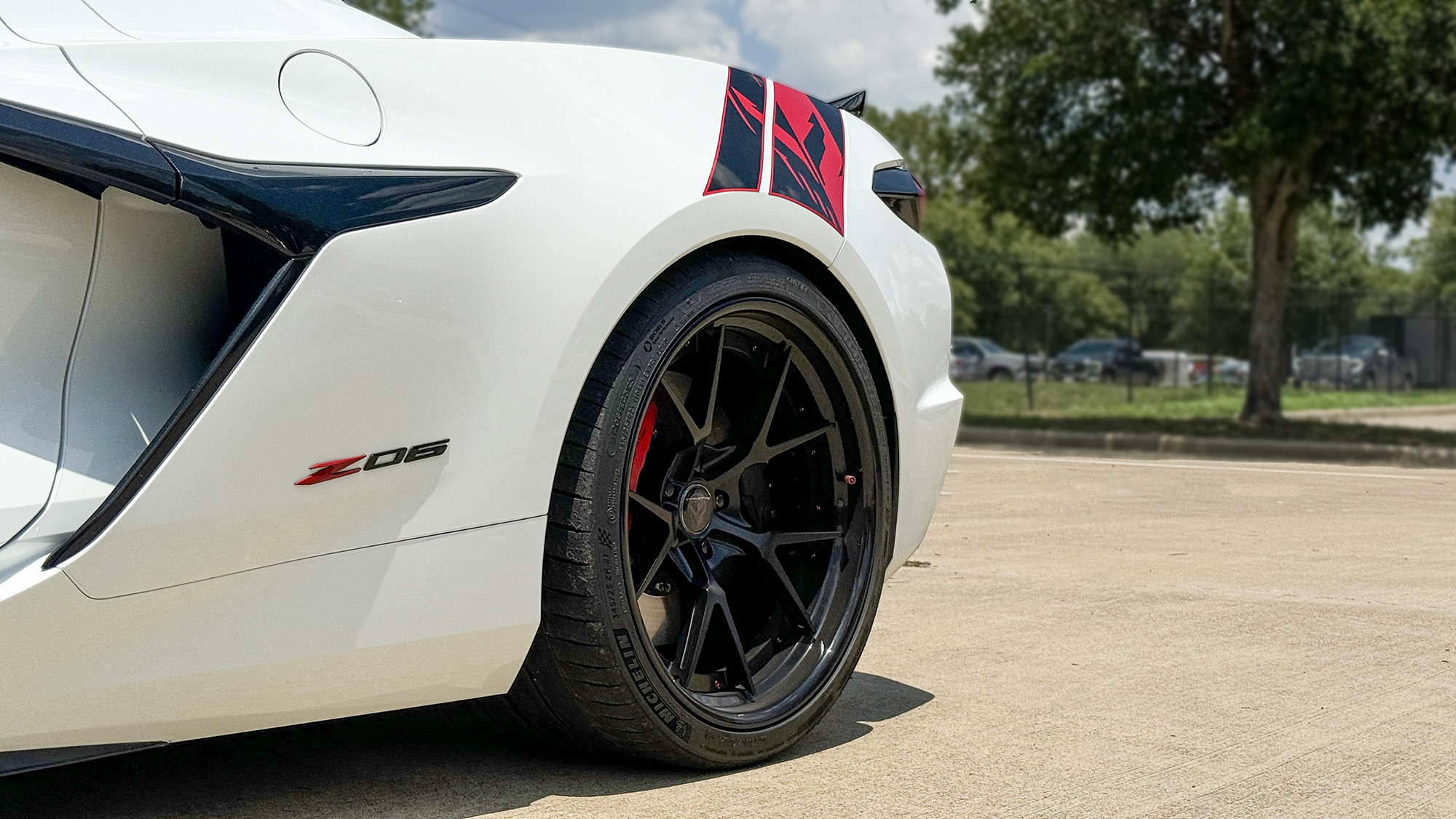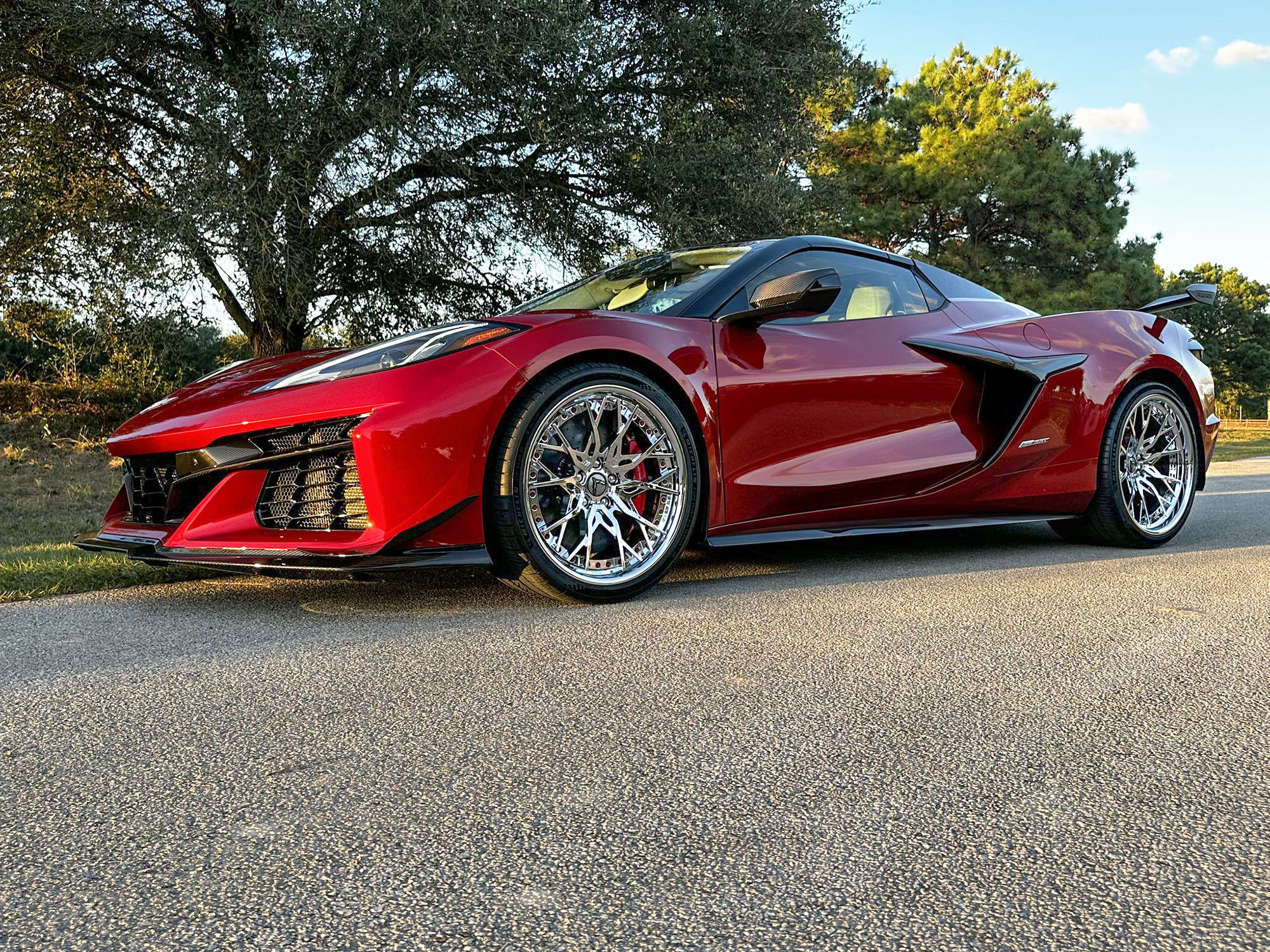 RS5 3PC CARBON FLASH BRUSHED ALUMINUM LIP SATIN RED HARDWARE